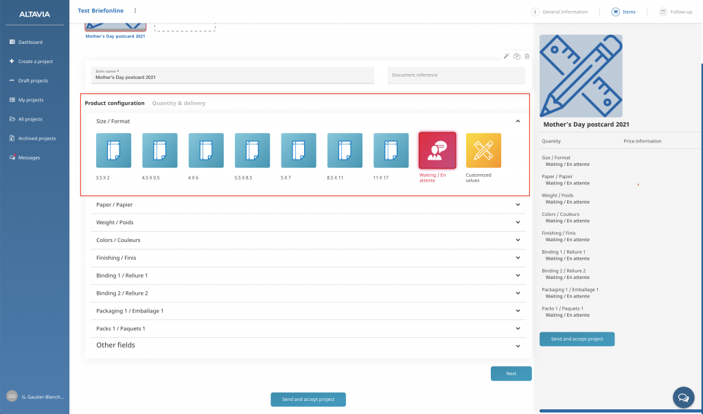 In which category should I do my printing brief?